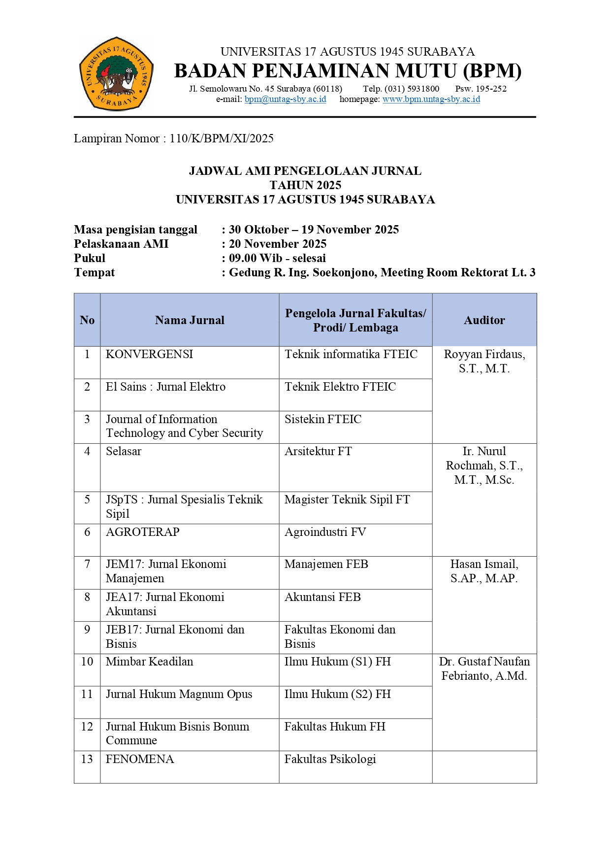 AUDIT MUTU INTERNAL (AMI) PENGELOLAAN JURNAL TAHUN 2025 DI LINGKUNGAN PROGRAM STUDI EKONOMI PEMBANGUNAN UNTAG SURABAYA