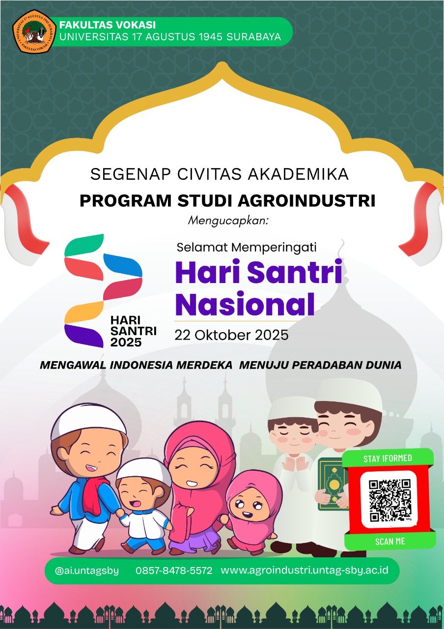 Civitas Akademika Universitas 17 Agustus 1945 Surabaya mengucapkan terima kasih dan penghargaan yang setinggi-tingginya kepada para santri di seluruh Indonesia atas dedikasi, keikhlasan, dan perjuangannya dalam menjaga nilai-nilai keagamaan dan kebangsaan.
